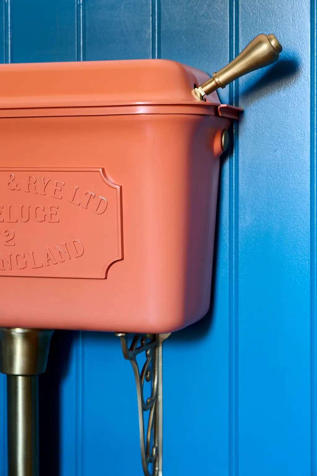 The showstopping element of this design is the bespoke coloured WC cistern. Specified from Catchpole & Rye in a rich burnt-orange shade, Sweet Potato Pie, it introduces a deliberate accent that reinforces the scheme’s confident use of colour.